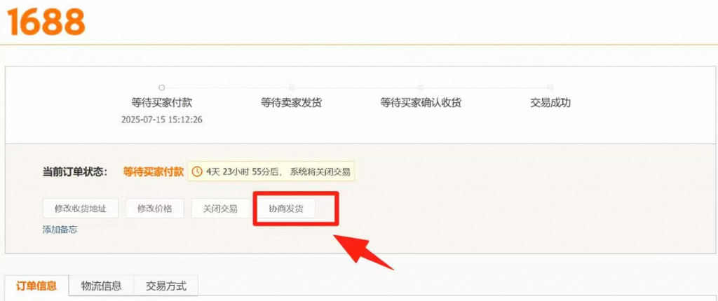 1688手机端操作方式:在订单详情-协商发货