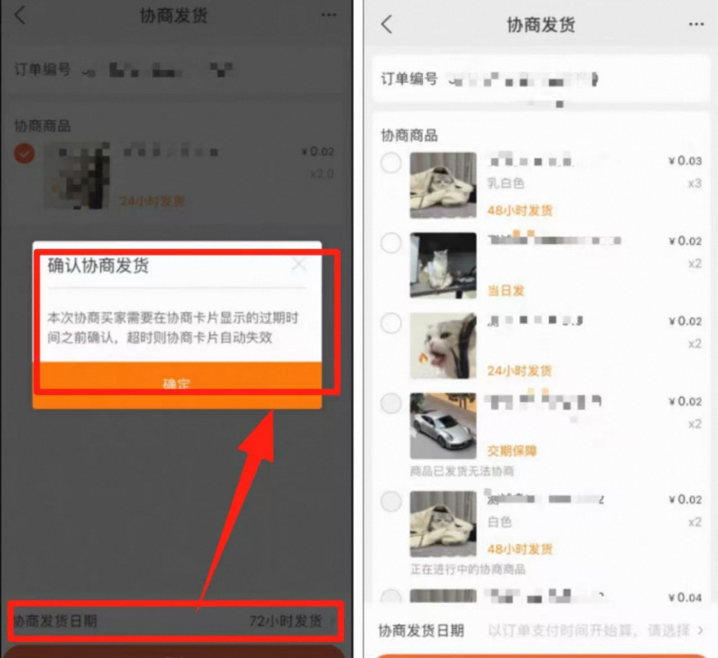 如果协商发货成功,则订单页面显示协商发货以后的时间,以协商后时间为考核。